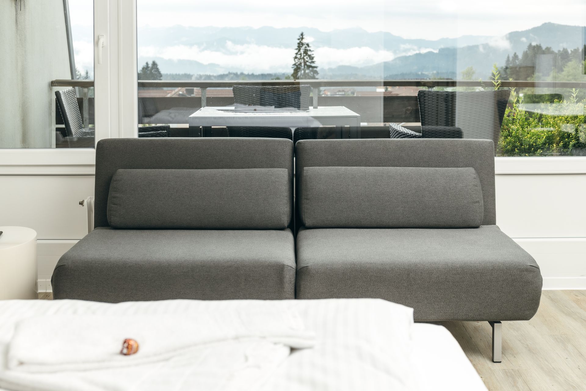 Hochwertige Ausstattung und traumhafte Bergsicht erwartet die Gäste im Apartment. Das gemütliche Bett mit hochwertiger Matratze ist 180cm breit. Auf der Schlafcouch hat eine dritte Person Platz. Die Küche ist mit dem nötigsten ausgestattet. Das Bad verfügt über eine Badewanne.