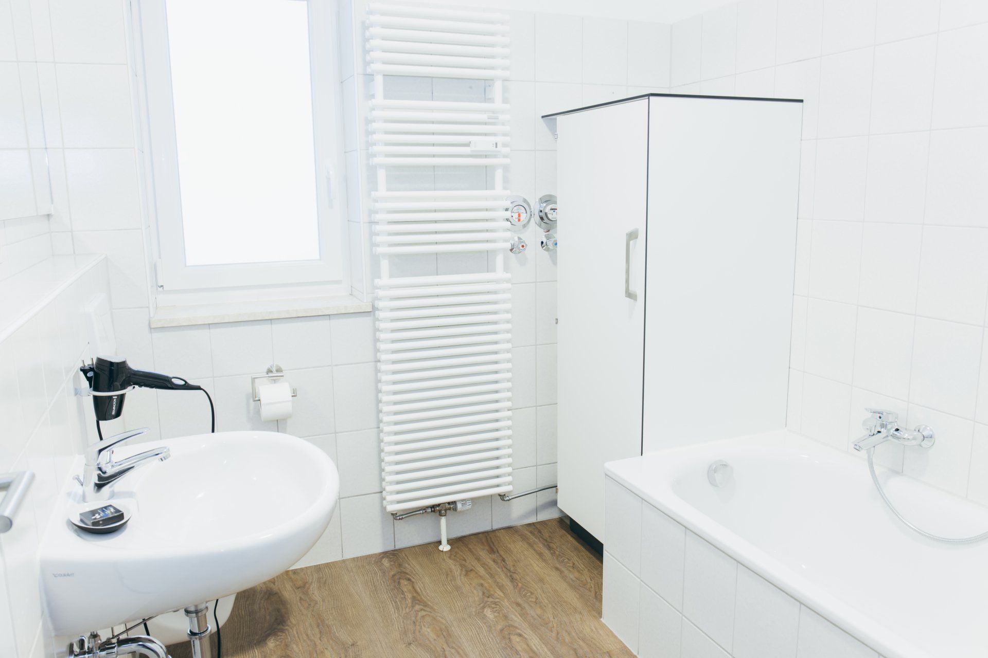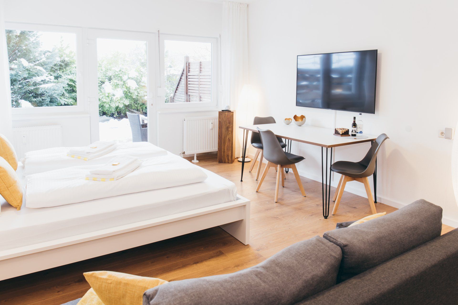Das Studio 151/2 bietet viel Platz auf der Südterrasse und einen großzügigen Wohn- und Schlafraum mit Küchenzeile. Der Schlafsessel wird auf Wunsch für eine dritte Person zum vollwertigen und bequemen Bett umgebaut. Das Bad ist mit einer Badewanne ausgestattet.