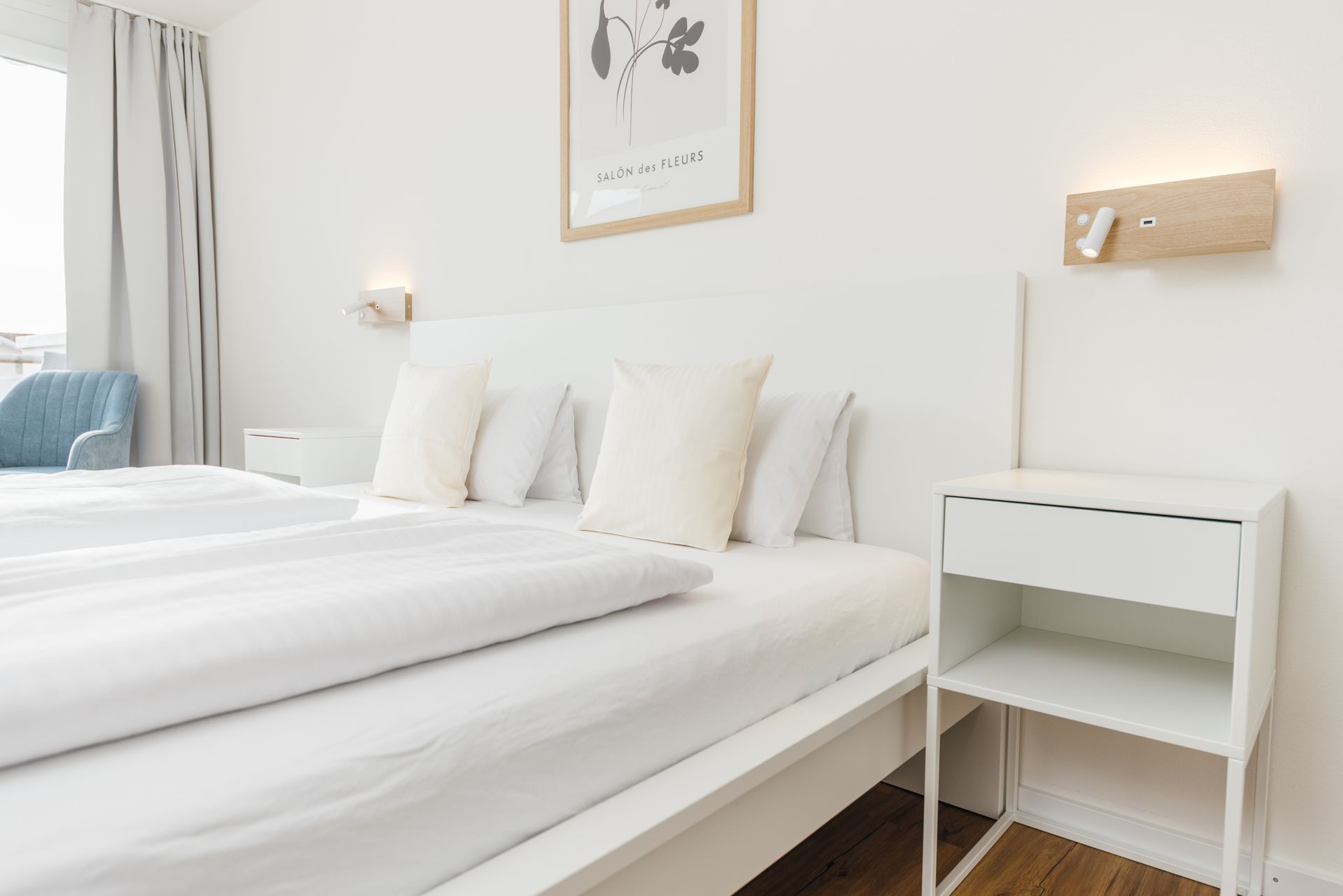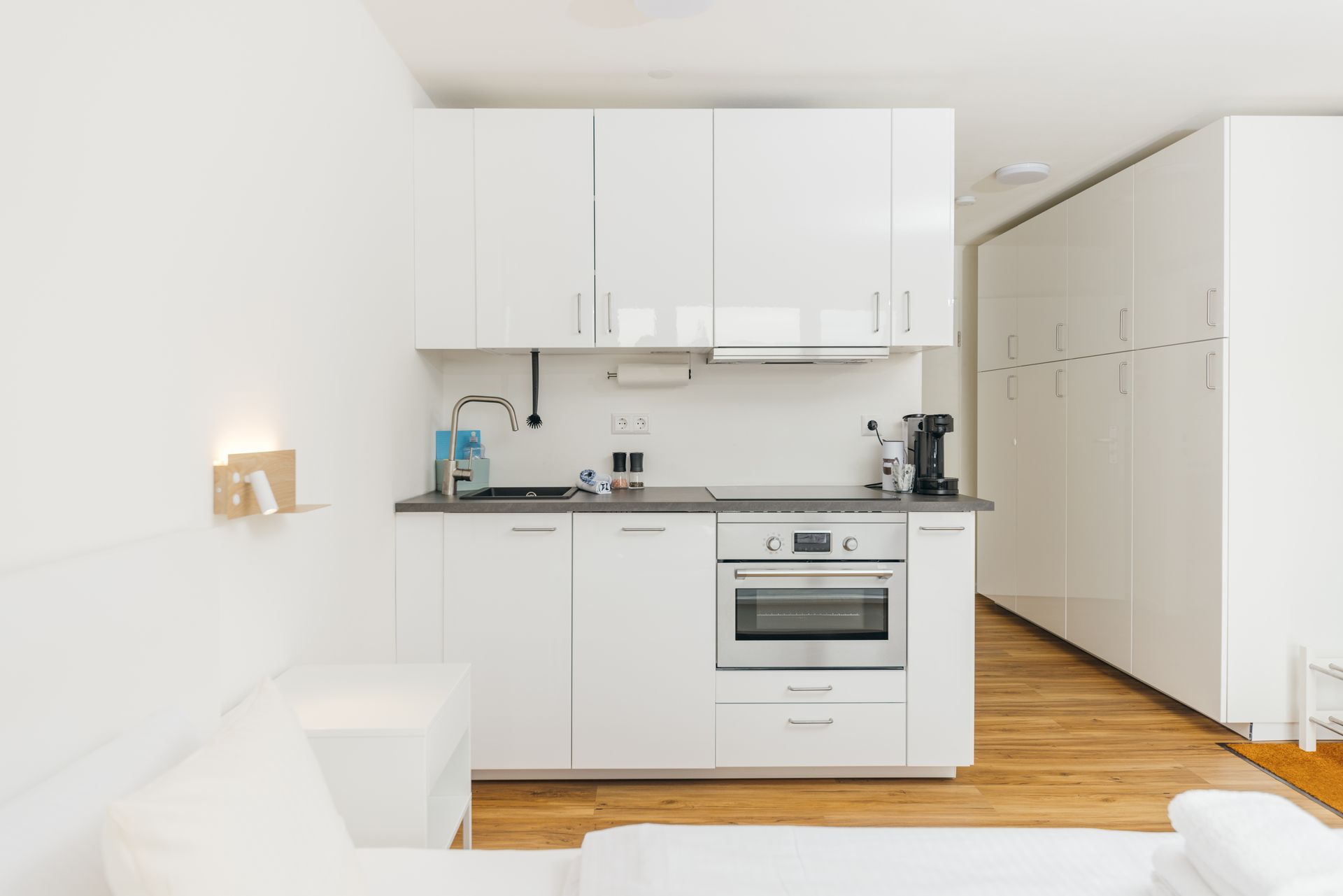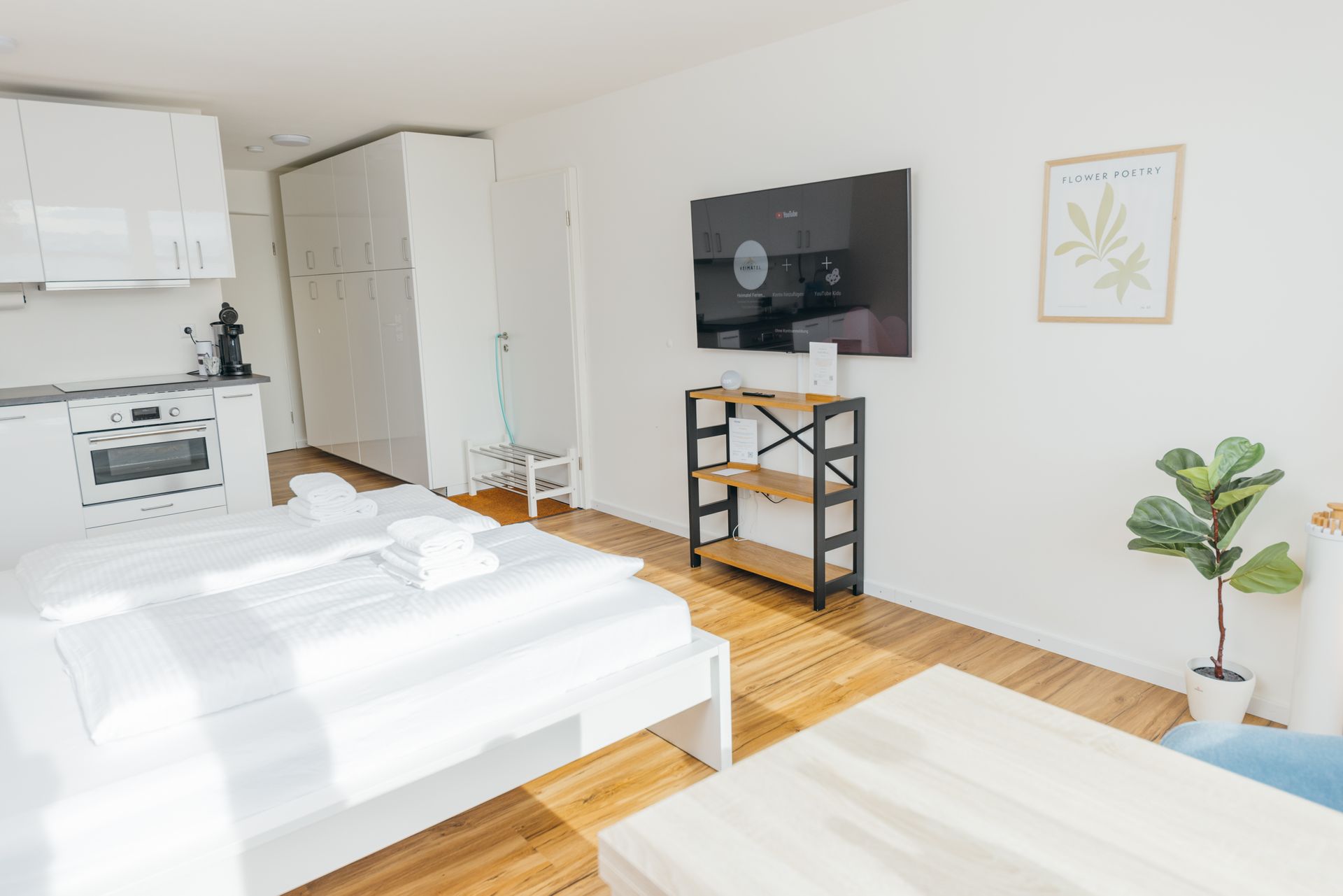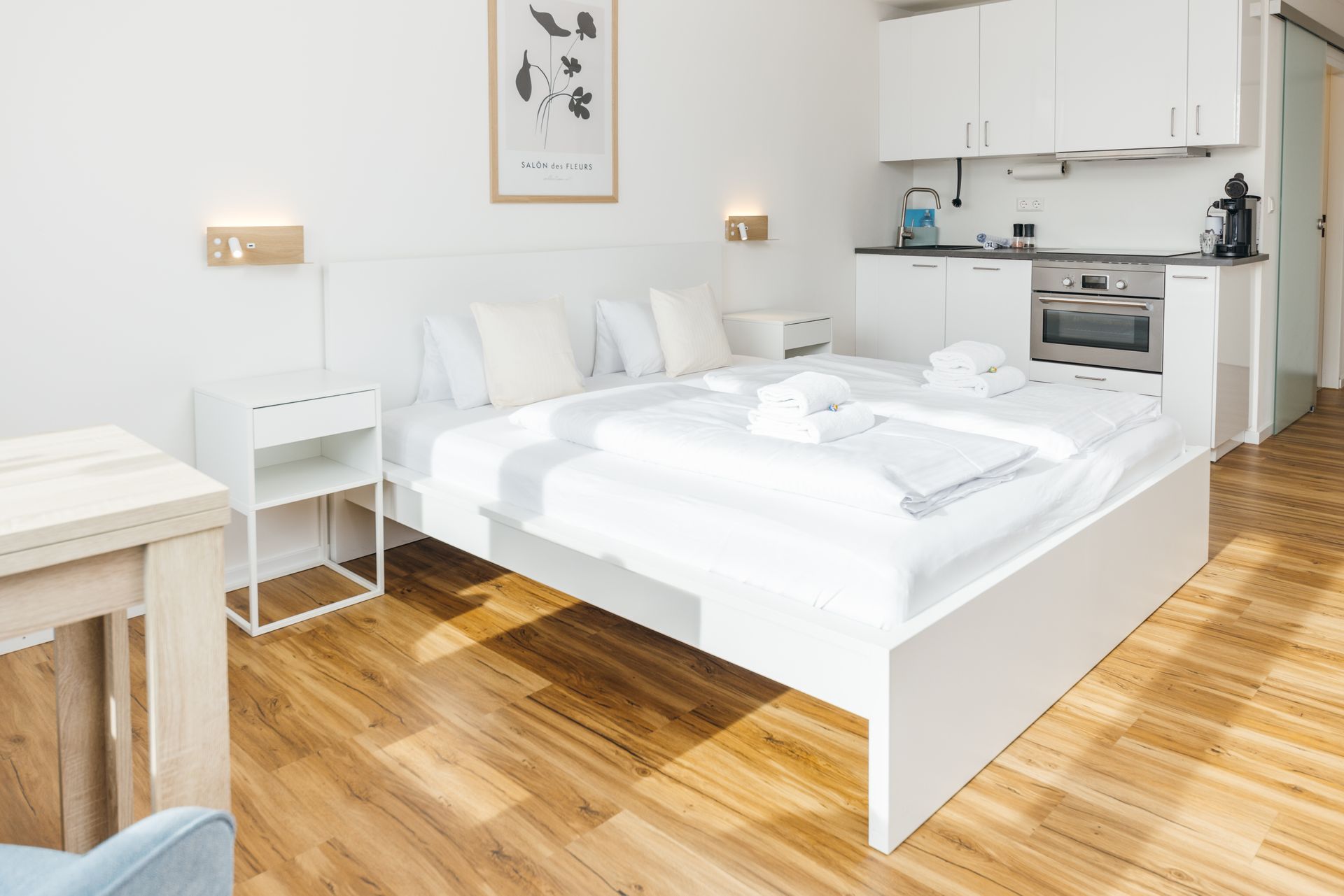 Unser App. 201 ist perfekt für einen Urlaub zu zweit. Alles was Sie brauchen, finden Sie hier. Vom Balkon hat man freie Sicht bis Sulzberg und sieht die Alpen über den Dächern hervorschauen. Das Bad ist mit einer Dusche ausgestattet. Die Wohnung hat eine doppelte Schallschutz-Verbindungstür zu App. 202 und kann auch zusammen gebucht werden.