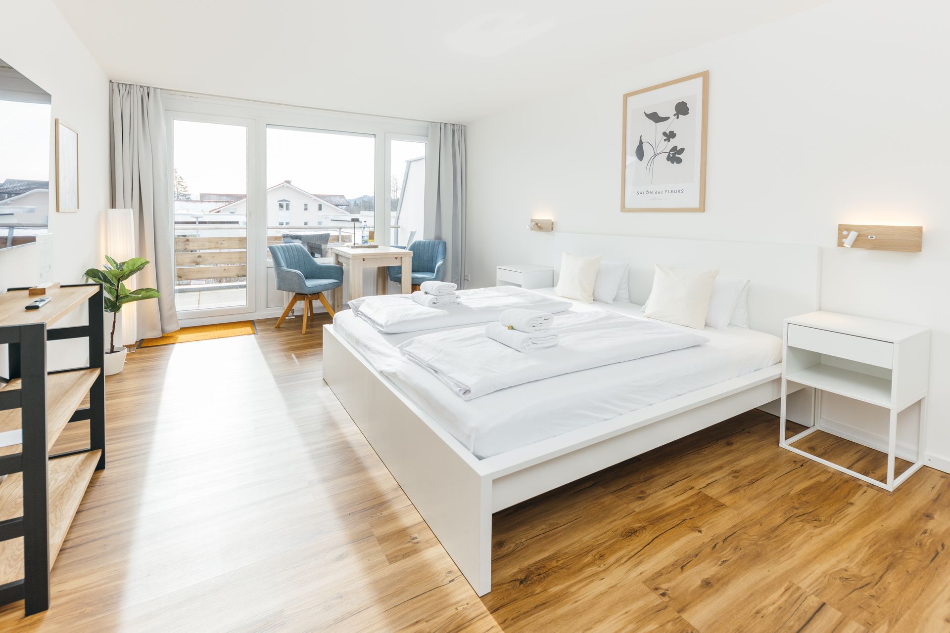 Unser Studio 283 ist perfekt für einen Urlaub zu zweit. Alles was Sie brauchen, findet Sie hier. Vom Balkon hat man freie Sicht bis Sulzberg und sieht die Alpen über den Dächern hervorschauen. Das Bad ist mit einer Dusche ausgestattet.