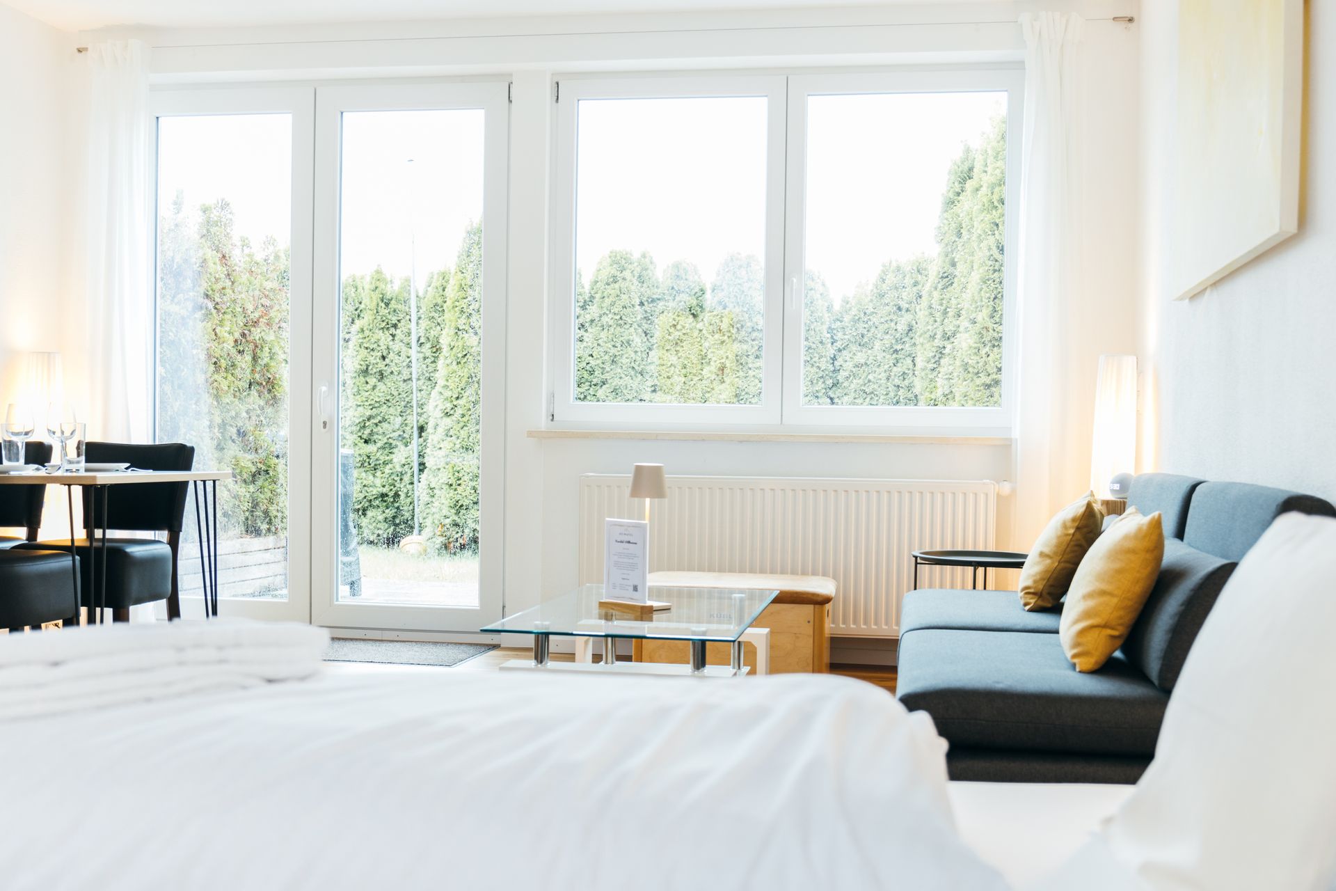 Seit 2023 ist das 48m² Studio in unmittelbarer Nähe zum Schwimmbad für euch buchbar. Die Wohnung bietet eine moderne und smarte Ausstattung sowie eine große, sonnige Terrasse, die dir viel Platz zum Entspannen und Erholen bietet.