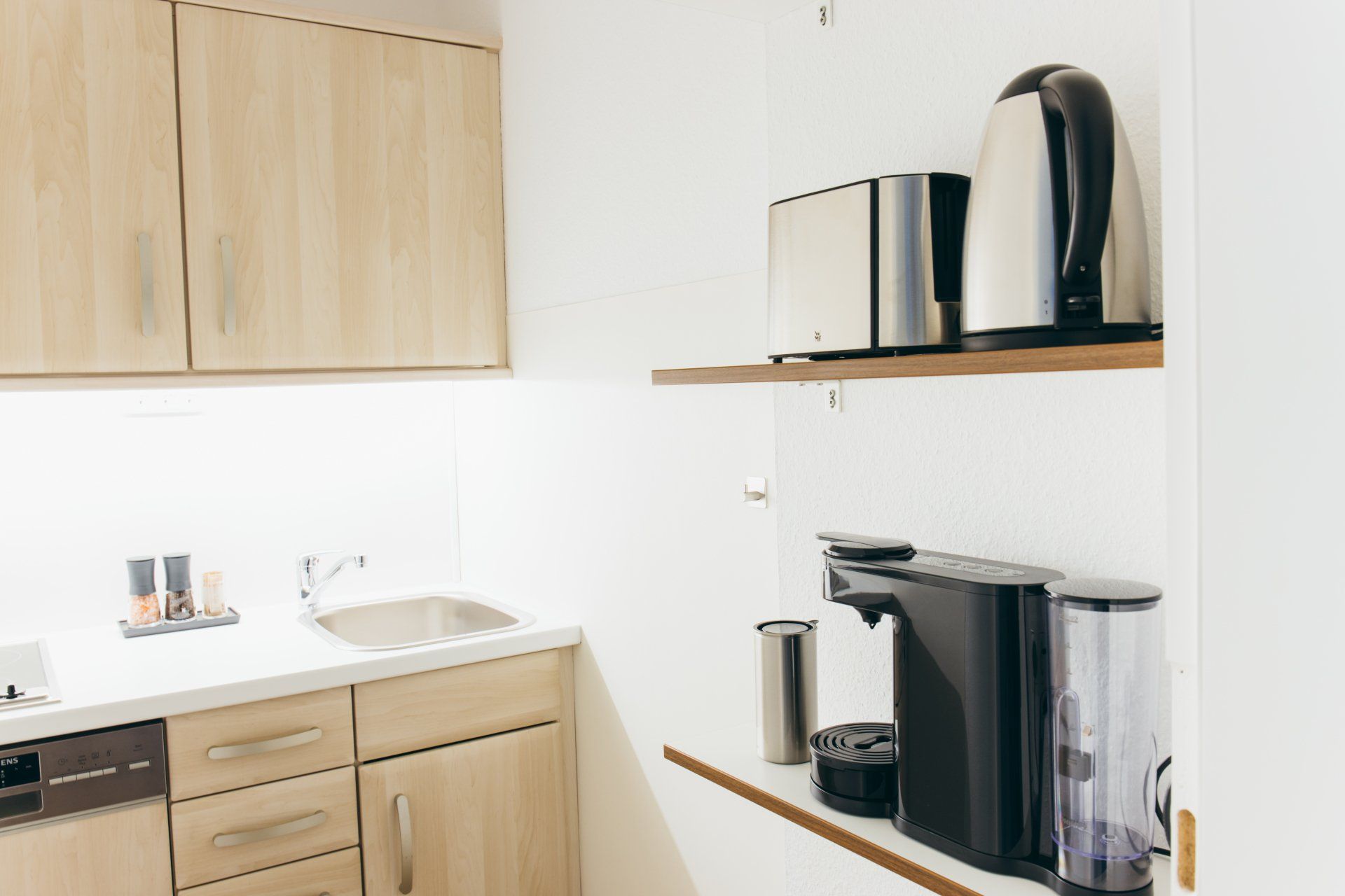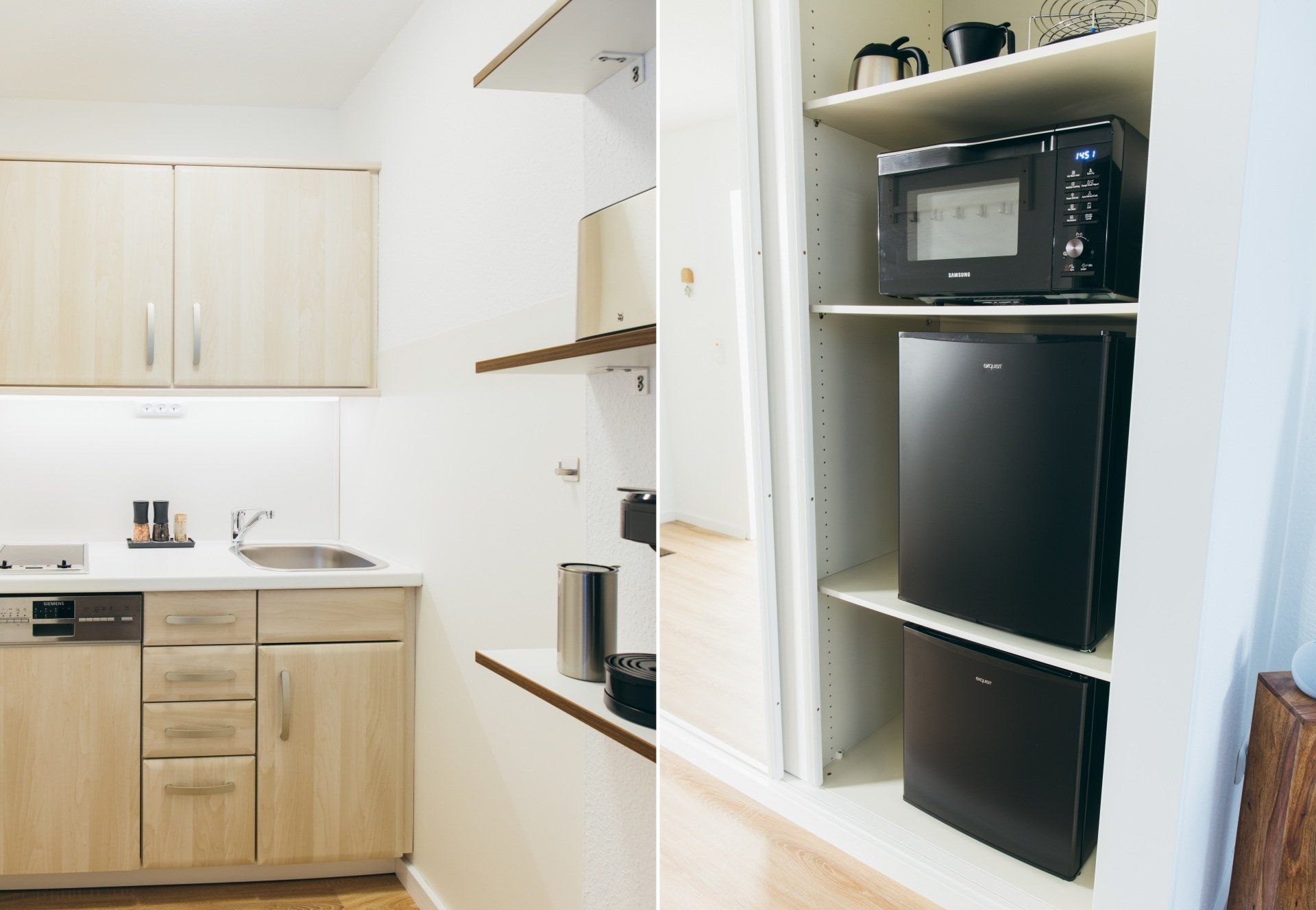 ✅Voll ausgestattete Küche mit Wasserkocher, Toaster, Mikrowelle, Geschirrspüler, Kühlschrank mit Gefrierfach