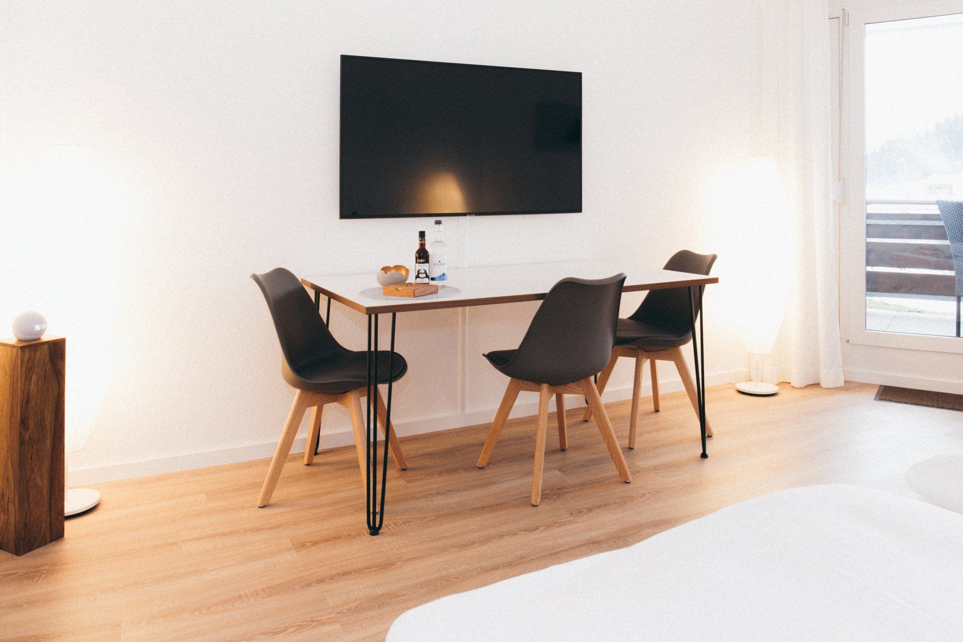 Ein modernes Studio für bis zu 4 Personen mit einem komfortablen Doppelbett und zwei Schlafsesseln, die zu vollwertigen Betten umgebaut werden können. Die separate Kochnische ermöglicht die Zubereitung kleiner Mahlzeiten. Das Badezimmer ist mit einer Badewanne ausgestattet, ideal für entspannende Momente. Der großzügige Balkon lädt dazu ein, die Natur zu genießen.
