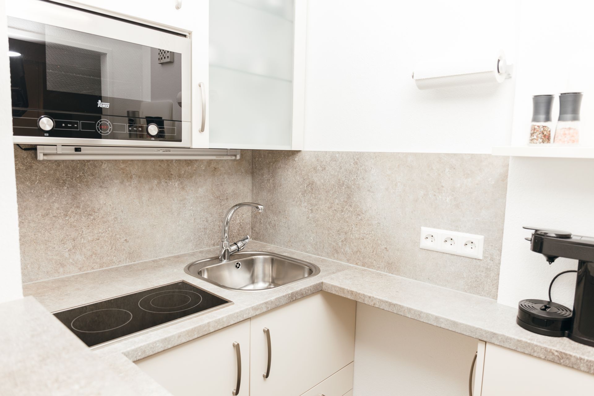 ✅Kleine Küche mit Wasserkocher, Toaster, Mikrowelle, Kühlschrank