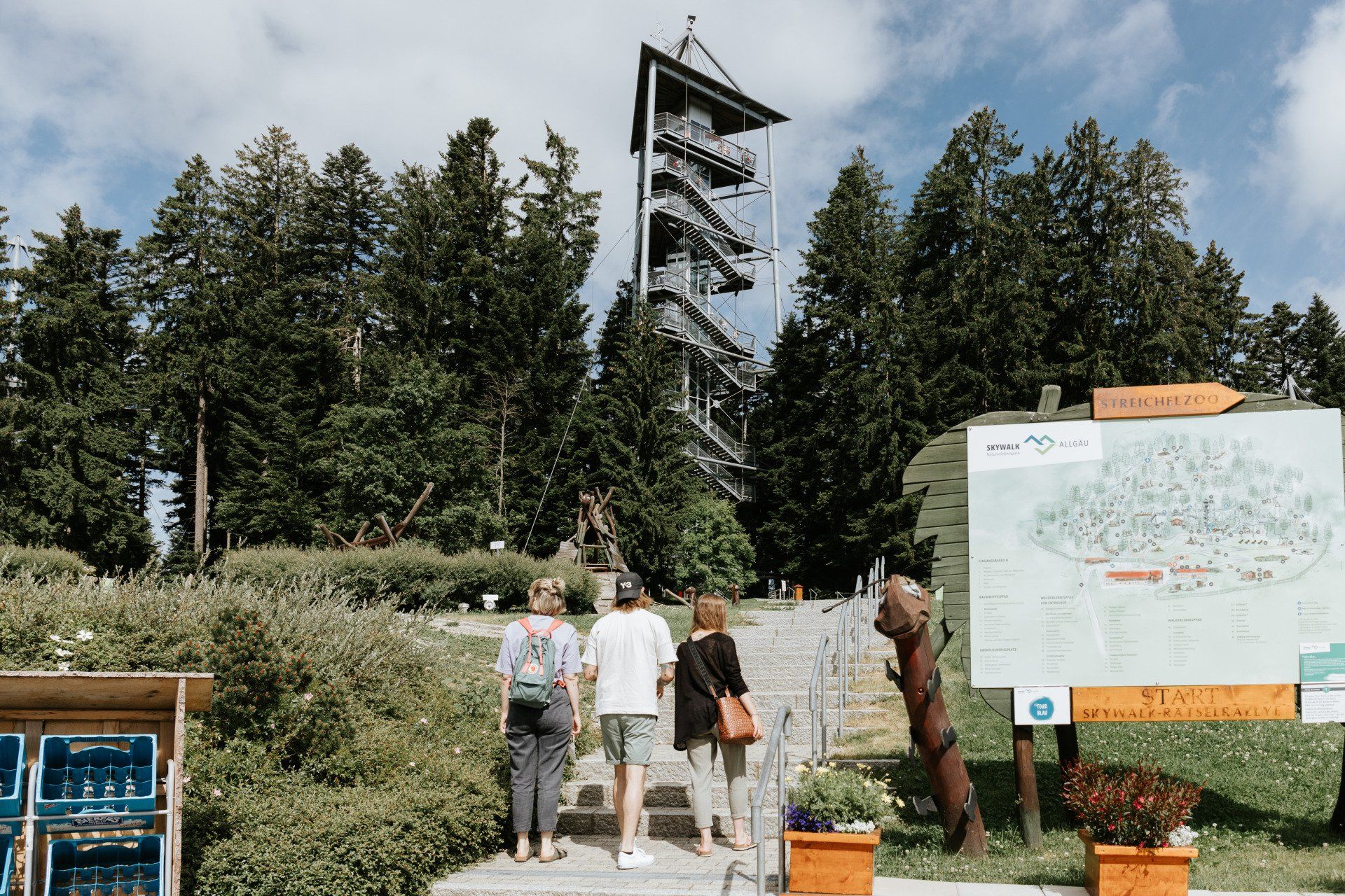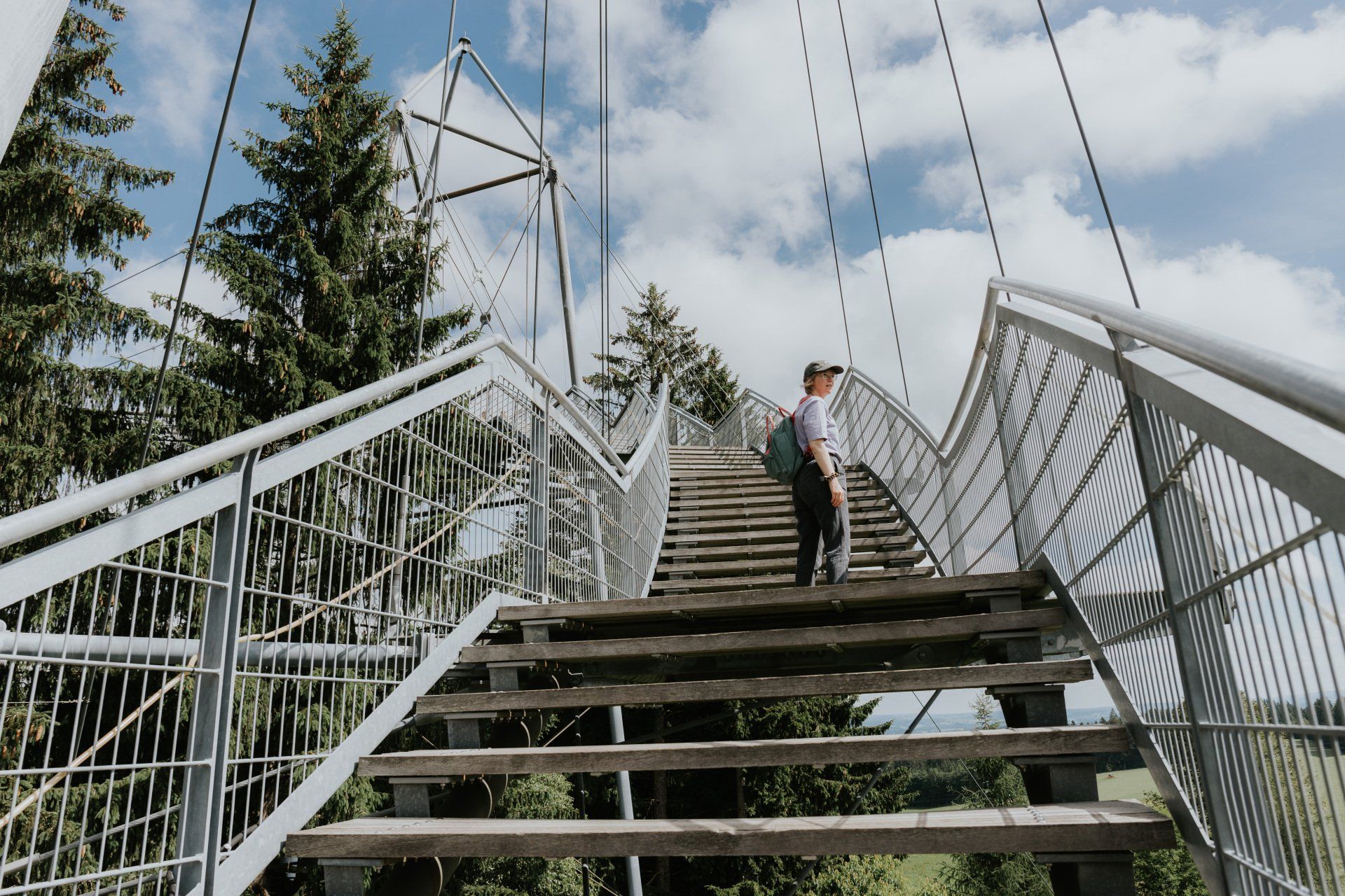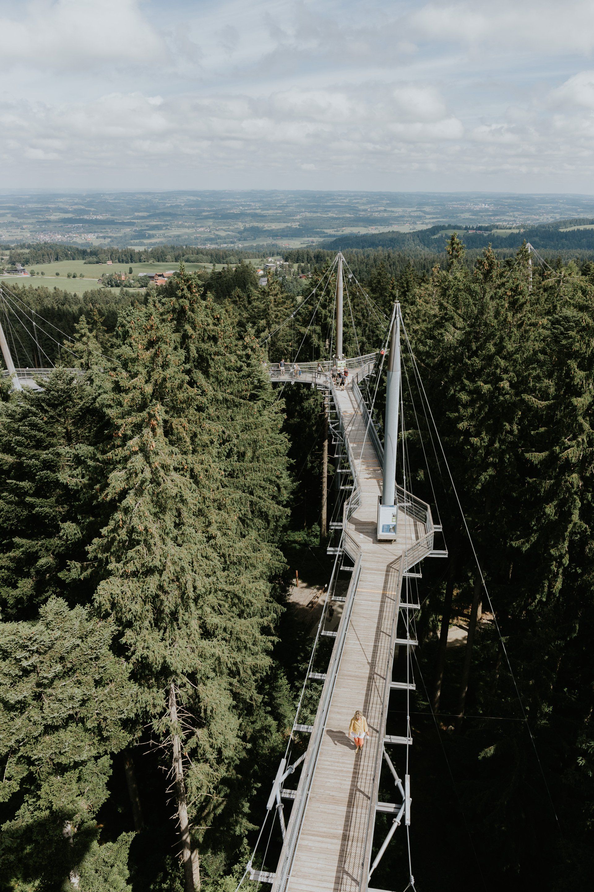 "Auf Baumwipfelhöhe spazieren gehen und ganz neue Perspektiven einnehmen ... das kann man auf dem hochmodernen und barrierefreien Baumwipfelpfad im Naturerlebnispark skywalk allgäu. Von hier aus - in bis zu 40 Metern Höhe - bieten sich fantastische Ausblicke, z.B. auf die Allgäuer Bergwelt und den Bodensee. Ein echtes WOW-Erlebnis für große und kleine Naturliebhaber!