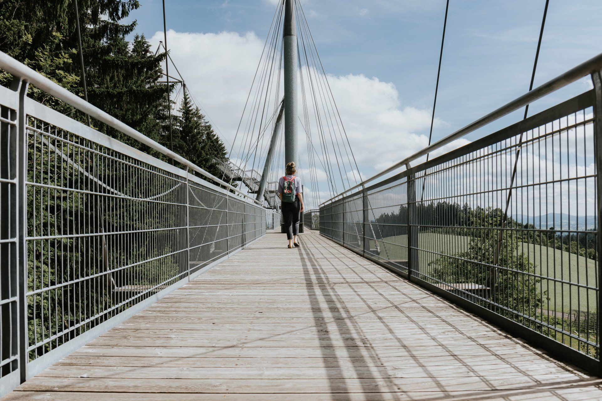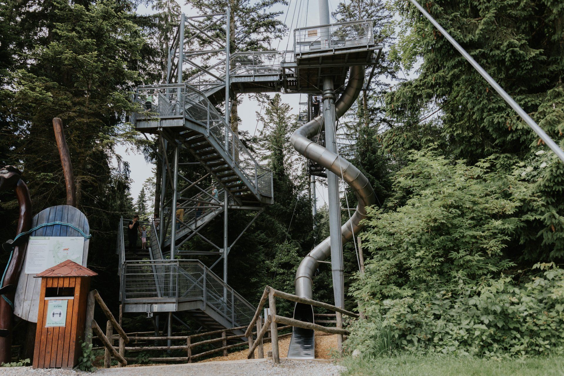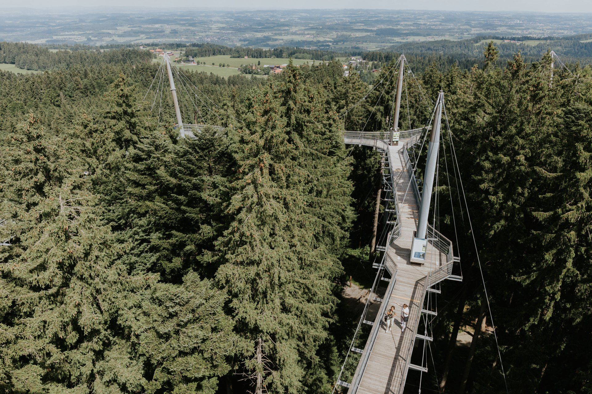 "Auf Baumwipfelhöhe spazieren gehen und ganz neue Perspektiven einnehmen ... das kann man auf dem hochmodernen und barrierefreien Baumwipfelpfad im Naturerlebnispark skywalk allgäu. Von hier aus - in bis zu 40 Metern Höhe - bieten sich fantastische Ausblicke, z.B. auf die Allgäuer Bergwelt und den Bodensee. Ein echtes WOW-Erlebnis für große und kleine Naturliebhaber!