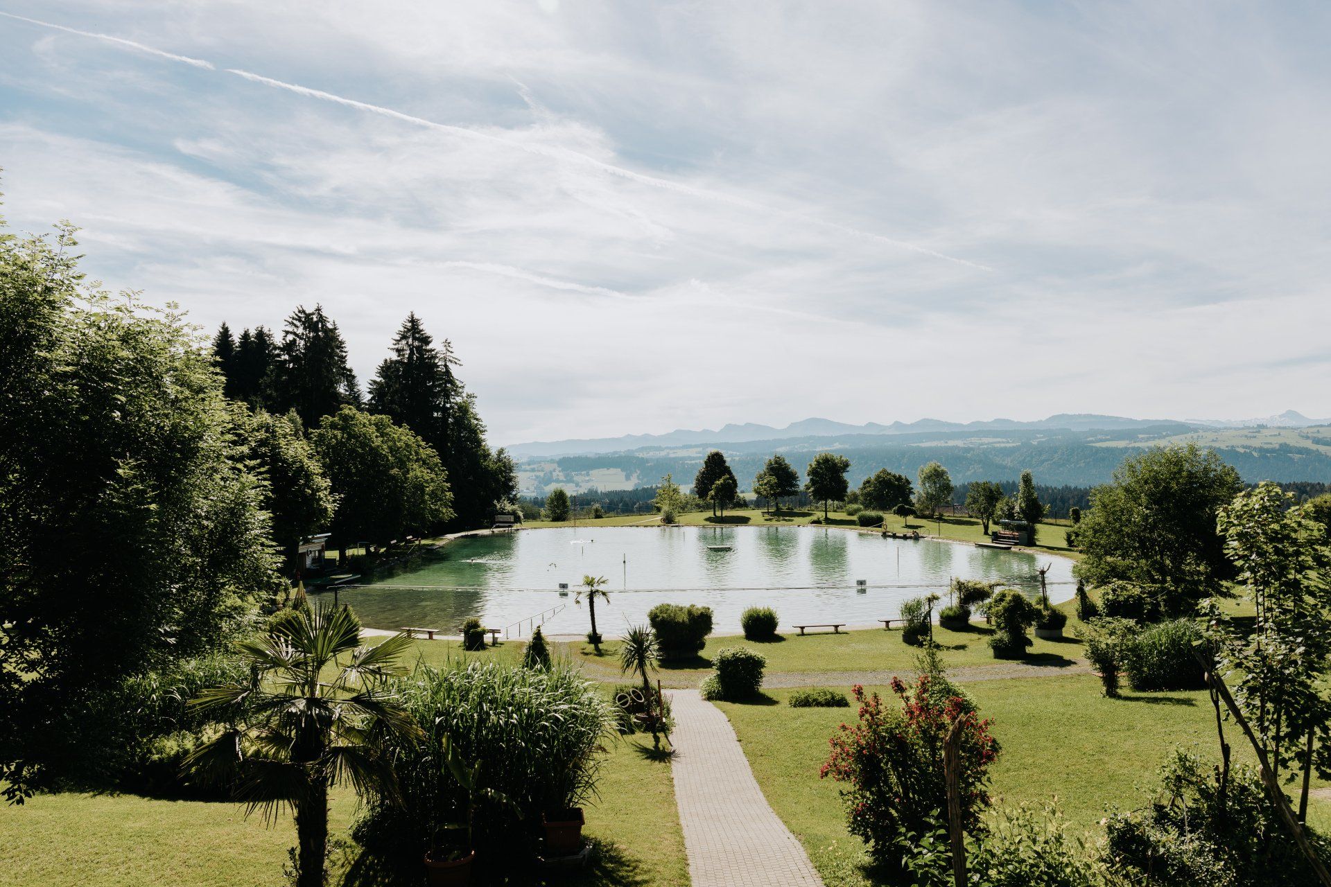 "Ein Erlebnis der besonderen Art für Groß und Klein ist ein Besuch im Alpenfreibad. Schwimmen Sie im von Quellwasser gespeisten Naturbecken und genießen Sie von der Liegewiese aus das gewaltige Alpenpanorama des Dreiländerecks.