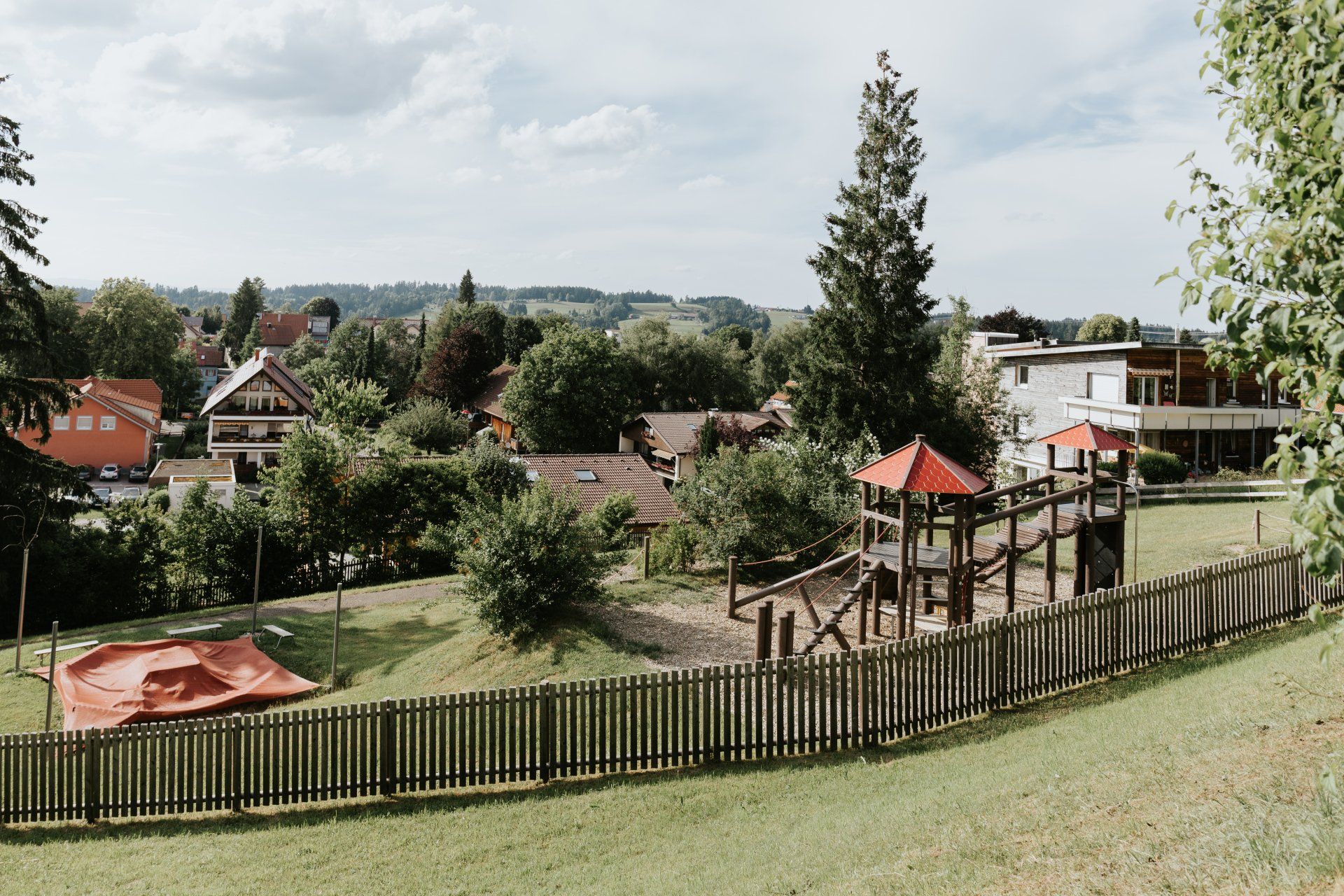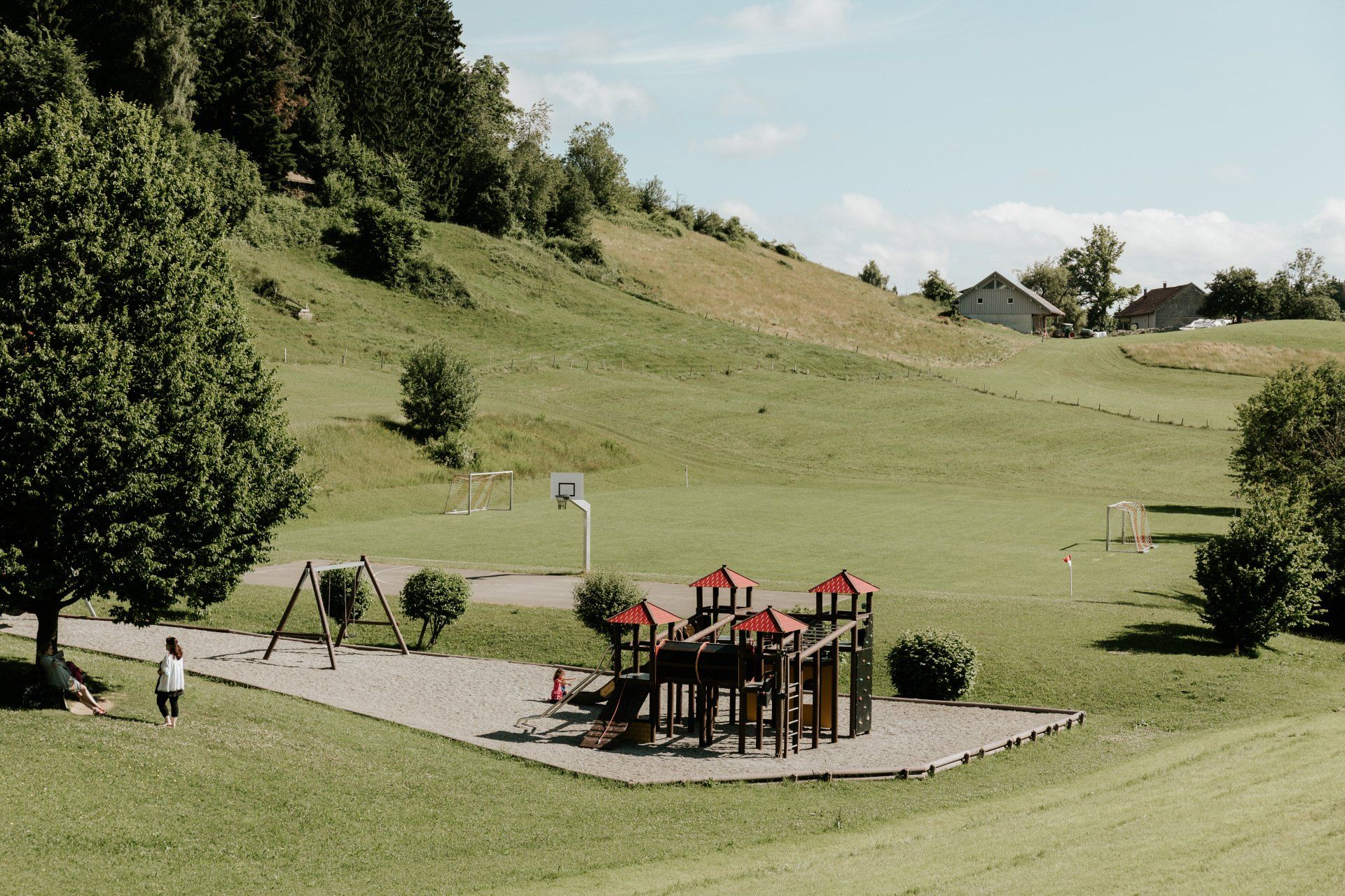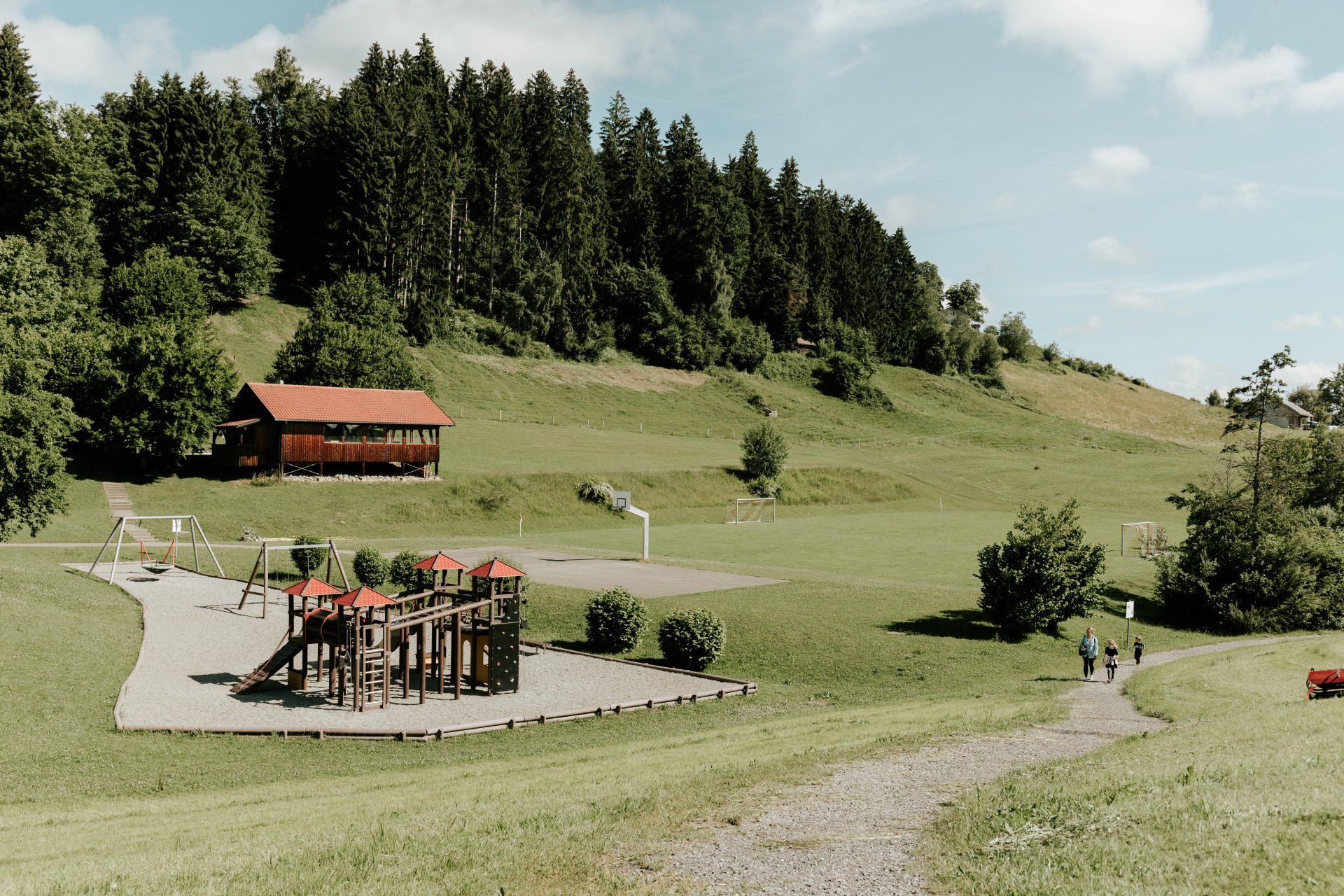 Rund um die Rosenalm Scheidegg gibt es schöne Spielplätze für Kinder jeden Alters. Auch Bolzplätze, Basketballkörbe und Liegewiesen sind ausreichend vorhanden.